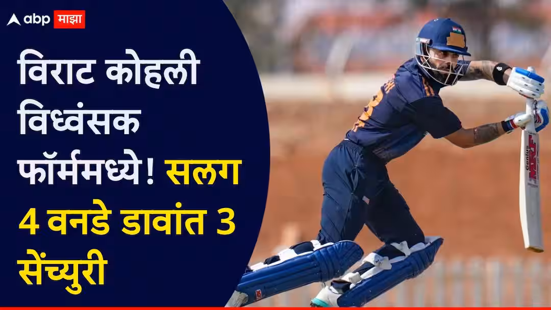 विराट कोहली विध्वंसक फॉर्ममध्ये! सलग 4 वनडे डावांत 3 सेंच्युरी, विजय हजारे ट्रॉफीत 16 वर्षांनंत