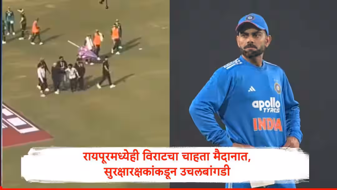 कोहलीचा चाहत्याचा रायपूरमध्येही मैदानात प्रवेश, सुरक्षारक्षकांकडून करेक्ट कार्यक्रम