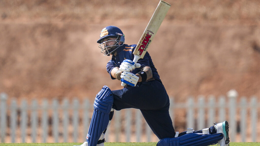 कोहलीने 101 चेंडूत 14 चौकार आणि तीन षटकारांसह 131 धावांची खेळी केली आणि बुधवारी बेंगळुरूमधील बीसीसीआय सेंटर ऑफ एक्सलन्स ग्राउंडवर झालेल्या पहिल्या गट डी सामन्यात दिल्लीने आंध्रवर चार गडी राखून विजय मिळवला.