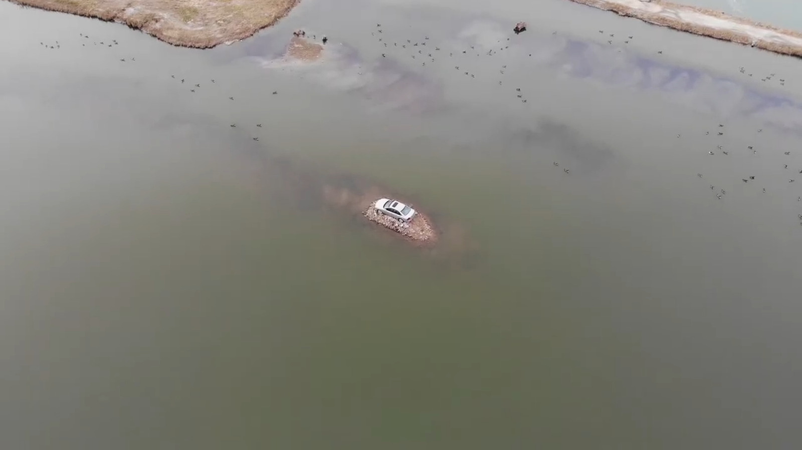 “बेट” एकेकाळी पातळ द्वीपकल्पाचा भाग होता जो पाण्यात शिरला होता. मानने व्हॉल्वोला शेवटपर्यंत बाहेर काढले, त्यानंतर बहुतेक काढून टाकण्यासाठी मोठ्या प्रमाणात उत्खननाचा वापर केला, ज्यावर व्हॉल्वो एस 80 बसलेल्या लहान “बेट” सोडले. आणि आजही ते जिथे बसले आहे, जेणेकरून आपण देखील जीवनाचा अर्थ शोधू शकता, कारण काही Google पुनरावलोकनकर्त्यांनी ते पाहिल्यानंतर गोंधळ घातला आहे. कोडे सोडवले.