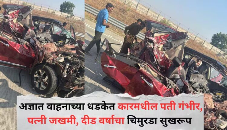 समृद्धी महामार्गावर भीषण अपघात; अज्ञात वाहनाच्या धडकेत कारमधील पती गंभीर तर पत्नी जखमी, दीड वर्षाचा चिमुरडा सुखरूप बचावला
