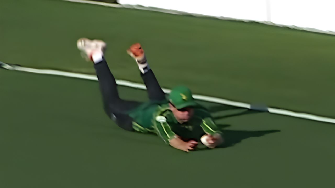 विल यंग डीप मिड-विकेटवर होता. चेंडू वेगाने खाली आल्याने तो झटपट आत गेला. अचूक निर्णयासह, यंगने स्वतःला पुढे फेकले आणि संपूर्ण स्ट्रेच डाइव्ह पूर्ण केले. बॉल टर्फपासून इंच इंच लांब होता पण तो जमिनीच्या अगदी वरती स्वच्छपणे पकडण्यात यशस्वी झाला.