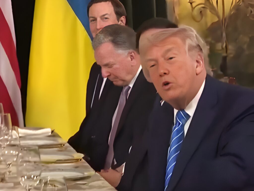 फेब्रुवारी 2022 मध्ये रशियाने युक्रेनवर पूर्ण-प्रमाणावर आक्रमण केल्यानंतर सुमारे चार वर्षांनी शांतता वाटाघाटी पुढे नेण्यासाठी ट्रम्प यांच्या मार-ए-लागो क्लबमध्ये नेते भेटले. गोलमेजमध्ये अमेरिकी अधिकारी आणि झेलेन्स्की यांच्या नेतृत्वाखालील युक्रेनियन शिष्टमंडळ, चर्चेचे निरीक्षण करण्यासाठी उपस्थित पत्रकारांचा समावेश होता.
