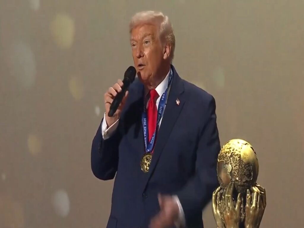 अमेरिकेचे राष्ट्राध्यक्ष डोनाल्ड ट्रम्प यांना वॉशिंग्टनमध्ये 2026 फिफा विश्वचषक स्पर्धेच्या अधिकृत ड्रॉ समारंभात शुक्रवारी फिफाचा पहिला शांतता पुरस्कार मिळाला. “लोकांना एकत्र करणाऱ्या आणि भावी पिढ्यांसाठी आशा निर्माण करणाऱ्या व्यक्तींचा” सन्मान करण्यासाठी हा पुरस्कार तयार करण्यात आला आहे. युनायटेड स्टेट्स 2026 च्या विश्वचषकाचे मेक्सिको आणि कॅनडासह सह-यजमान आहे.