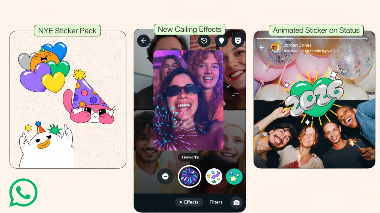 - WhatsApp नवीन वर्ष 2026 साठी उत्सवाचे स्टिकर्स, कॉन्फेटी प्रतिक्रिया आणि व्हिडिओ कॉल इफेक्ट जोडते.