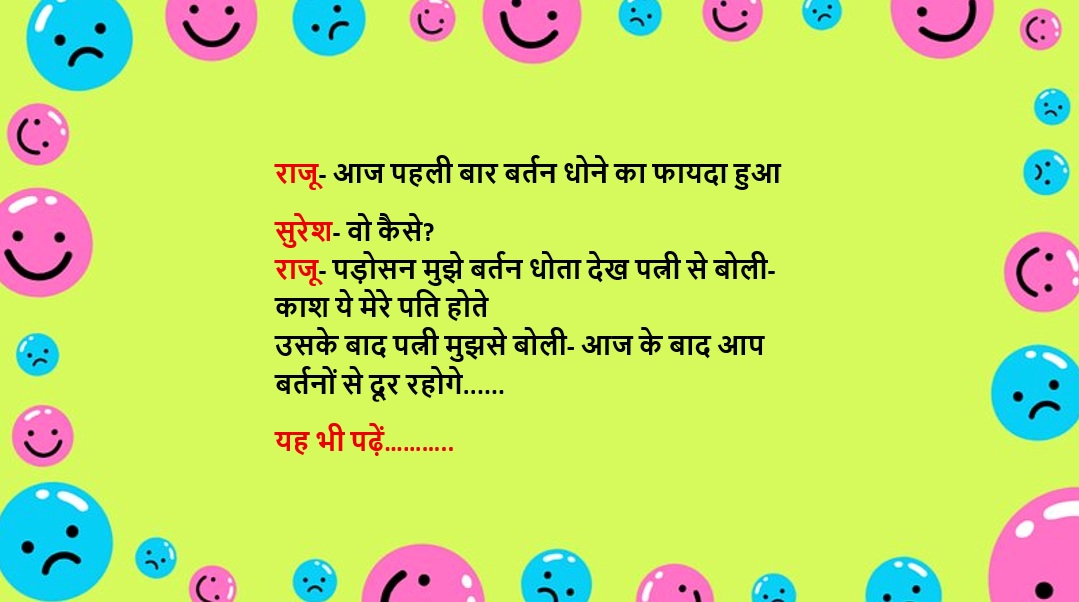 राजू- आज पहिल्यांदा भांडी धुण्याचा फायदा झाला.