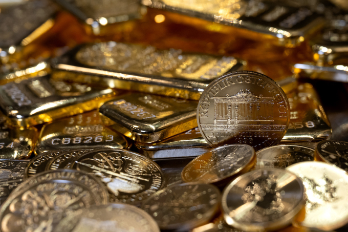सोन्याच्या पट्ट्या आणि नाणी मौल्यवान धातू डीलर प्रो ऑरमच्या टेबलावर तिजोरीत पडून आहेत. AFP द्वारे dpa पिक्चर-अलायन्स द्वारे फोटो