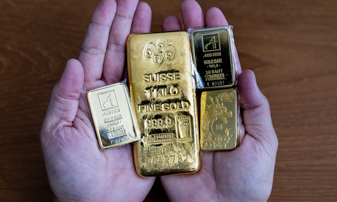 11 सप्टेंबर 2025 रोजी एका आग्नेय आशियाई देशात एका गुंतवणूकदाराकडे सोन्याचा सराफा, ज्याला अनेकदा सोन्याचे बार म्हणून संबोधले जाते.