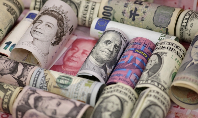 युरो, हाँगकाँग डॉलर, यूएस डॉलर, जपानी येन, ब्रिटिश पाउंड आणि चीनी 100-युआन बँक नोटा 21 जानेवारी 2016 रोजी चित्रित केलेल्या चित्रात दिसत आहेत. रॉयटर्सचे छायाचित्र
