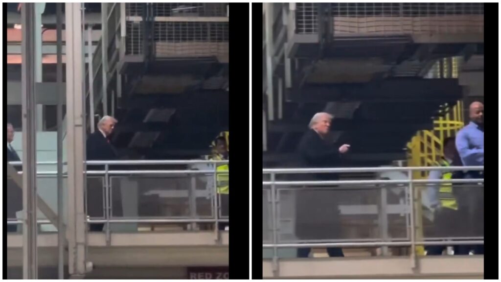 मूलतः TMZ द्वारे जारी केलेल्या, व्हायरल व्हिडिओमध्ये एक नाखूष ट्रम्प एका उंच मजल्याच्या भागातून जात असताना कारखान्याच्या मजल्यावर कोणाकडे तरी पाहत असल्याचे दिसून आले. त्याने उजव्या हाताचा वापर करून आक्षेपार्ह हावभाव केले आणि दोनदा 'F**K YOU' असा टोला लगावला. दरम्यान, सीएनएनने 40 वर्षीय फॅक्टरी कामगाराला टीजे साबुला नावाचा माणूस म्हणून ओळखले ज्याने ट्रम्पला नाराज केले. चौकशी होईपर्यंत त्यांना कामावरून निलंबित करण्यात आले आहे, असे अहवालात म्हटले आहे.