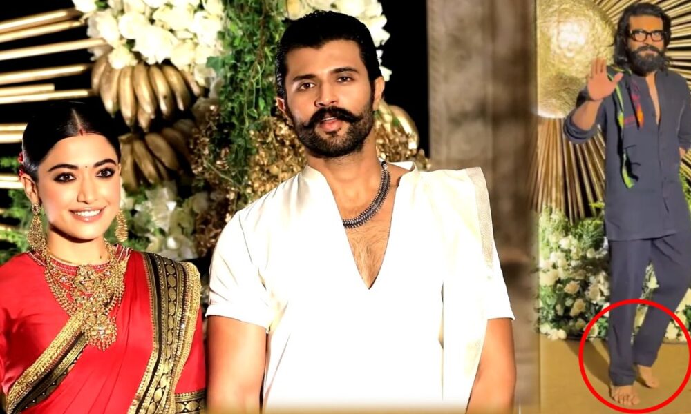 हैदराबादमध्ये बुधवारी रात्री झालेल्या विजय देवरकोंडा आणि रश्मिका मंदान्ना यांच्या लग्नाच्या रिसेप्शनला साऊथ फिल्म इंडस्ट्रीतील अनेक बड्या स्टार्सनी हजेरी लावली. हा भव्य सोहळा पूर्णपणे तारांकित होता, परंतु संध्याकाळची सर्वात जास्त चर्चा सुपरस्टार राम चरणची होती. राम चरण पत्नी उपासना कामिनेनी कोनिडेलासोबत रिसेप्शनमध्ये पोहोचले. या खास प्रसंगी दोघांनीही काळ्या रंगाचे कपडे घातले होते. तथापि, सर्वांचे लक्ष वेधून घेतले ते म्हणजे राम चरण संपूर्ण समारंभात अनवाणी दिसले.