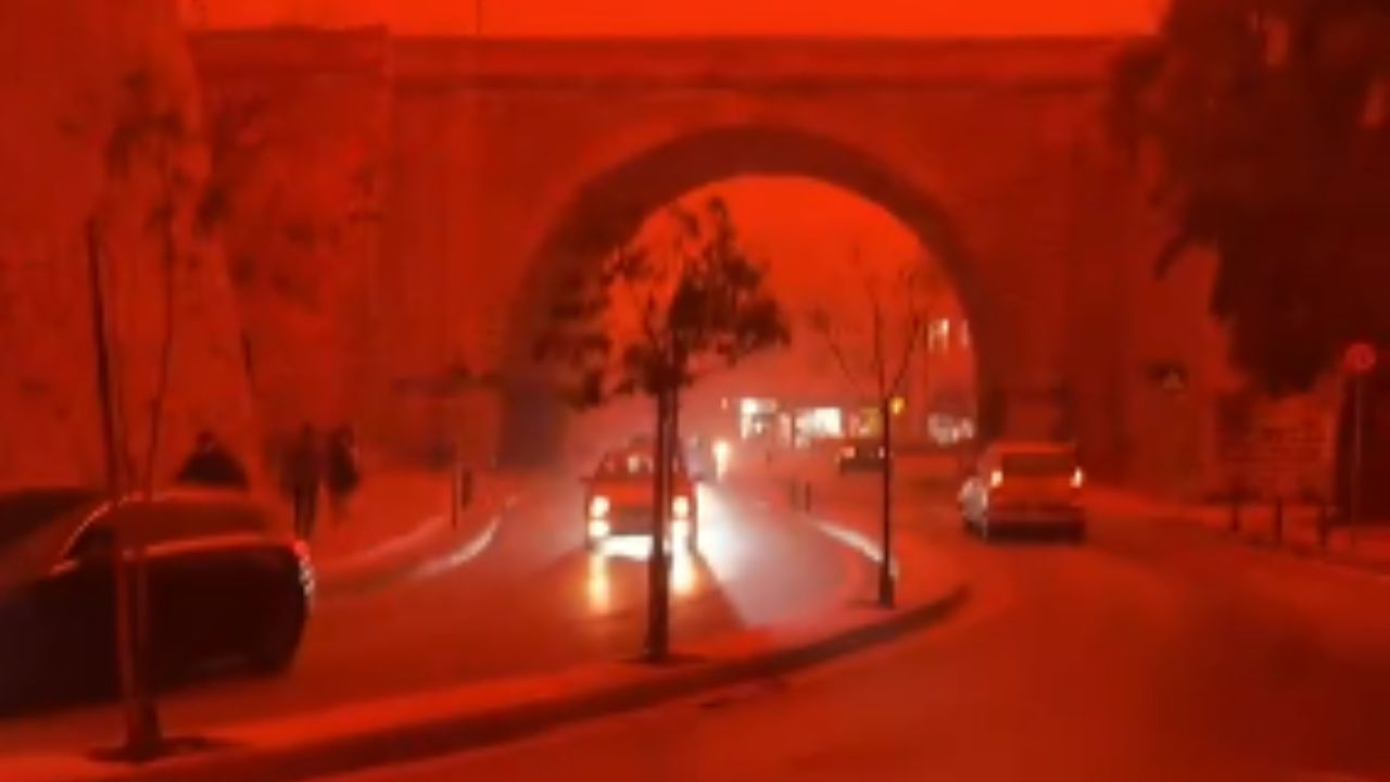 1 एप्रिल 2026 रोजी ग्रीसच्या या भागात हवामानात अचानक बदल झाला. “एर्मिनिओ” नावाच्या शक्तिशाली वादळाने संपूर्ण परिसराला वेढले. या वादळाने ताशी 100 किमी पेक्षा जास्त वेगाने वारे वाहू लागले, ज्याने आफ्रिकेच्या सहारा वाळवंटातून मोठ्या प्रमाणात धूळ उचलली आणि ती ग्रीसमध्ये आणली. या धुळीने संपूर्ण आकाश व्यापले होते, त्यामुळे सूर्यप्रकाशही वेगळ्या प्रकारे दिसू लागला होता. याचा परिणाम असा झाला की संपूर्ण आकाश लाल दिसू लागले आणि वातावरण धुके आणि गुदमरल्यासारखे झाले.