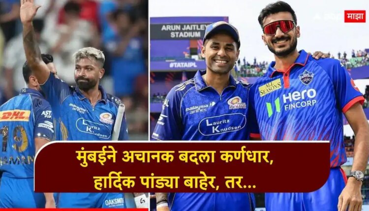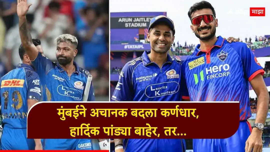 हार्दिक पांड्या या सामन्यात मुंबईकडून खेळत नाहीये. प्रभारी कर्णधार सूर्यकुमार यादवने सांगितले की, हार्दिकची प्रकृती ठीक नसल्यामुळे तो या सामन्याचा भाग नाही. दिल्लीने या सामन्यासाठी प्लेइंग इलेव्हनमध्ये कोणताही बदल केलेला नाही, तर दीपक चहर, कॉर्बिन बॉश आणि मिचेल सँटनर यांचे मुंबई संघात पुनरागमन झाले आहे.