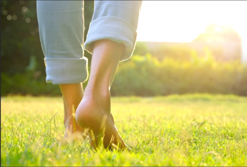 गवतावर अनवाणी चालण्यासारखे काय आहे?