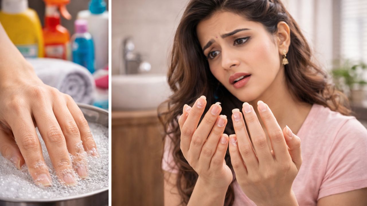 तुम्हाला माहिती आहे का की वारंवार हात धुणे किंवा भांडी जास्त वेळ साफ करणे हा तुमच्या नखांचा सर्वात मोठा शत्रू आहे. पाणी आणि साबणाच्या रसायनांमुळे नखे त्यांची नैसर्गिक आर्द्रता गमावतात आणि कोरडे होतात आणि तुटायला लागतात.