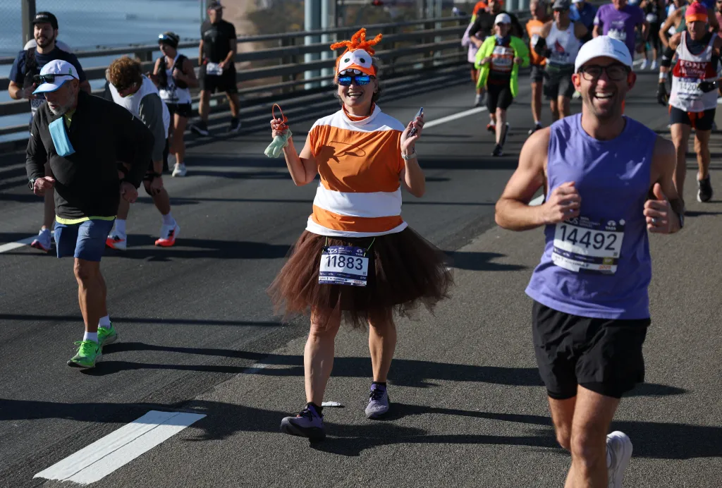 NYC मॅरेथॉन चालवणारे जंगली पोशाख