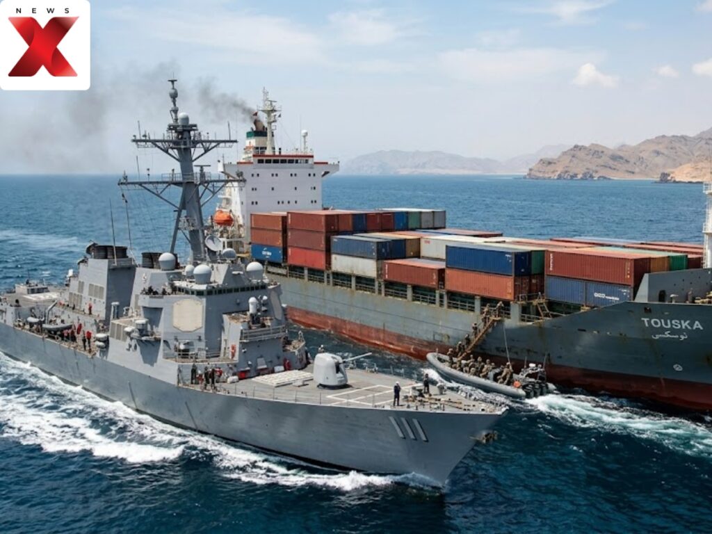 अमेरिकेने ओमानच्या आखातात अडथळा आणताना इराणचा ध्वज असलेले मालवाहू जहाज जप्त केले आहे, असे राष्ट्राध्यक्ष डोनाल्ड ट्रम्प यांनी रविवारी सांगितले. या जहाजाने सामरिकदृष्ट्या महत्त्वाच्या होर्मुझ सामुद्रधुनीजवळ अमेरिकेच्या नौदलाच्या नाकेबंदीचे उल्लंघन करण्याचा प्रयत्न केला होता. ट्रम्प यांच्या म्हणण्यानुसार, USS स्प्रुअन्स डिस्ट्रॉयरने मालवाहू जहाज अडवले, ज्याची ओळख तुस्का म्हणून ओळखली जाते, त्याने थांबण्याच्या वारंवार चेतावणीकडे दुर्लक्ष केल्यानंतर. ऑपरेशनचे तपशील देताना ट्रम्प म्हणाले की, जवळजवळ 900 फूट लांब आणि विमानवाहू वाहकाच्या वजनाच्या तुलनेत या जहाजाने नाकेबंदीच्या पुढे ढकलण्याचा प्रयत्न केला.