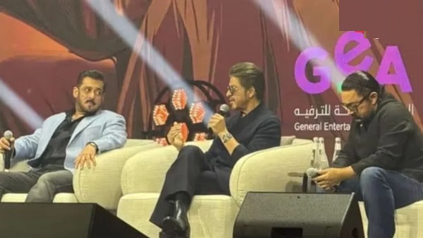 मुंबई शाहरुख खान, सलमान खान, आमिर खान आणि यूट्यूब सेन्सेशन मिस्टर बीस्टच्या व्हायरल फोटोने इंटरनेटवर धुमाकूळ घातल्यानंतर भारतीय चित्रपटसृष्टीतील तीन तारे पुन्हा एकदा मंचावर एकत्र आले. सौदी अरेबियातील जॉय फोरममध्ये 'इस्ट टू वेस्ट: द ग्लोबल राइज ऑफ बॉलीवूड' या विषयावरील पॅनेल चर्चेत या तिघांनी भाग घेतला.