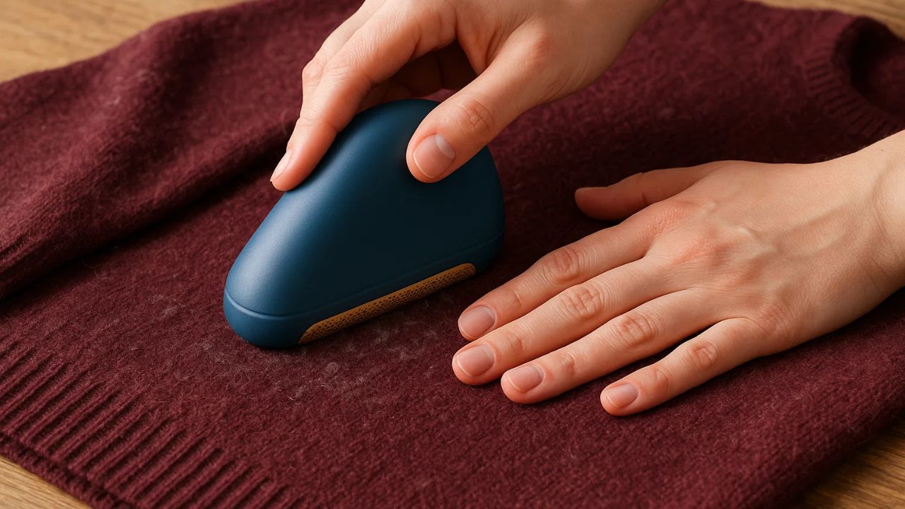 जर स्वेटरवर जास्त पिलिंग जमा झाले असेल, तर एक बारीक कंगवा थोड्या कोनात धरा आणि वर-खाली दिशेने खेचा. ही पद्धत मोठ्या गुठळ्या सहजपणे काढून टाकते. फक्त कंगवा जास्त कडक होणार नाही याची काळजी घ्या.
