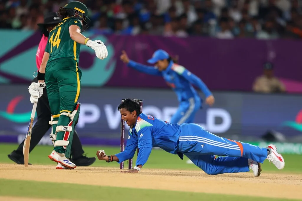 रिचा घोषने 77 बॉलमध्ये 94 धावांची स्फोटक डाव खेळला आणि त्याने 11 चौकार आणि 4 षटकार ठोकले. दक्षिण आफ्रिकेतून क्लो ट्रियन 3 विकेट्स, तर उच्चार आणि लिपिक 2-2 विकेट्स घेतल्या.