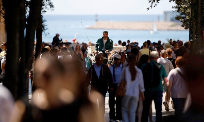 24 एप्रिल 2025 रोजी स्पेनच्या पाल्मा डी मॅलोर्का येथील पर्यटकांच्या गर्दीतून कॅरेज ड्रायव्हरने प्रवेश केला. रॉयटर्सचा फोटो