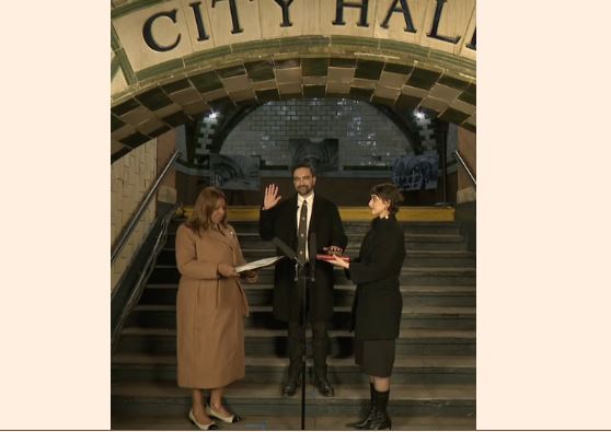 न्यूयॉर्कचे ऍटर्नी जनरल लेटिशिया जेम्स, एक राजकीय सहयोगी यांच्याद्वारे प्रशासित हा समारंभ, जुन्या सिटी हॉल स्टेशनवर झाला, जो शहराच्या मूळ भुयारी मार्गांपैकी एक आहे जो त्याच्या जबरदस्त कमानीच्या छतासाठी ओळखला जातो.